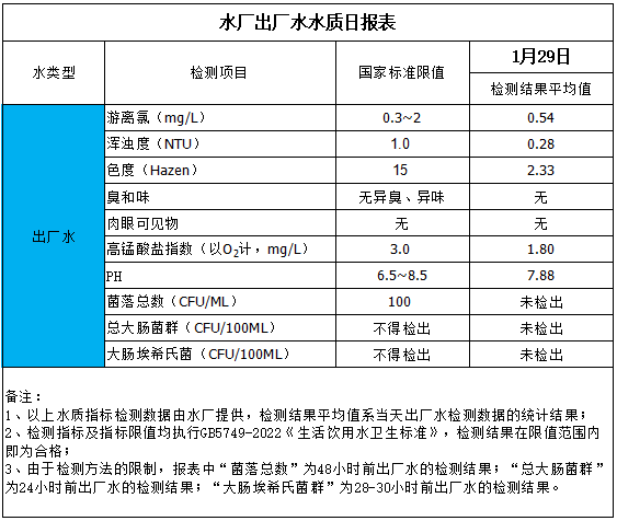 出厂水水质日报表(2026-1-29)