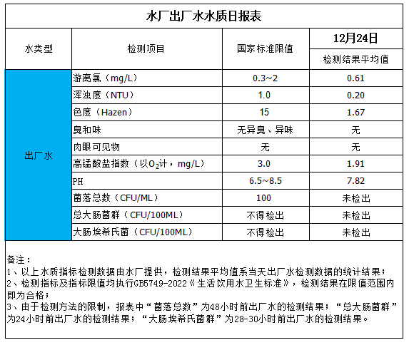 出厂水水质日报表(2025-12-24)