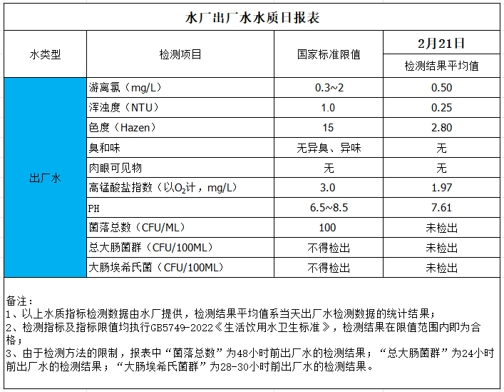 出厂水水质日报表(2026-2-21)