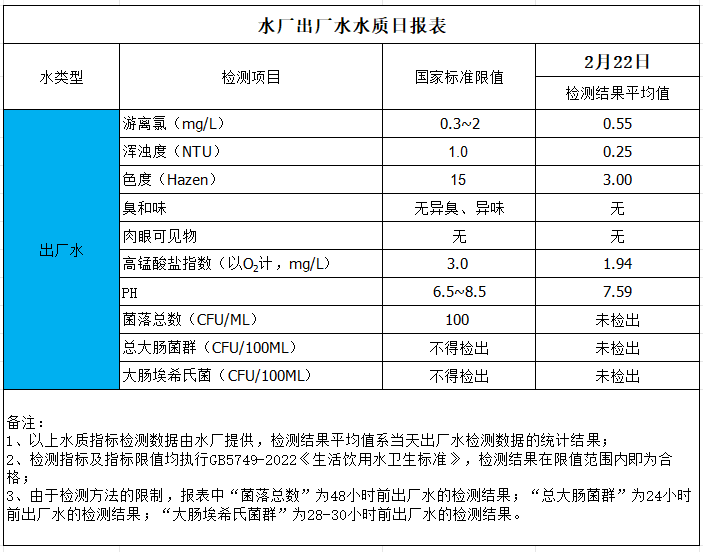 出厂水水质日报表(2026-2-22)
