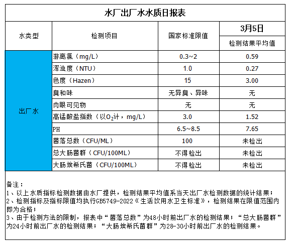 出厂水水质日报表(2026-3-5)