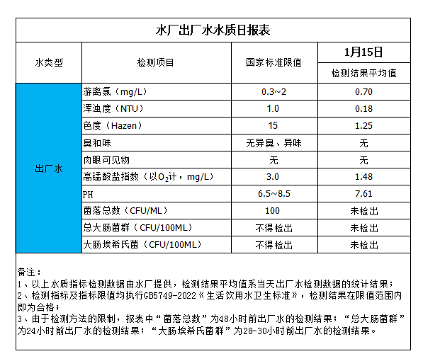 水厂出厂水水质日报表(2024-1-15)