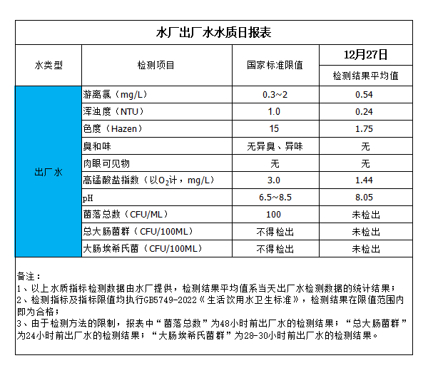 水厂出厂水水质日报表(2024-12-27)
